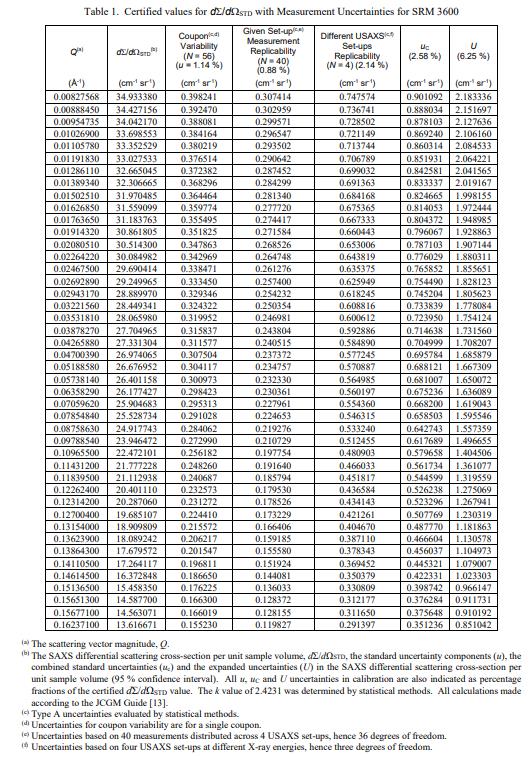 SRM 3600 小角度X射線散射強(qiáng)度校準(zhǔn) 旨在用于小角度 X 射線散射 (SAXS) 儀器的散射強(qiáng)度校準(zhǔn)。 SAXS 測量表征了異質(zhì)材料系統(tǒng)的微觀結(jié)構(gòu)和納米結(jié)構(gòu):特別是微米級(jí)和納米級(jí)特征的尺寸分布,以及散射強(qiáng)度校準(zhǔn),它們的體積分?jǐn)?shù)或數(shù)量濃度,以及它們的表面積 [1]。